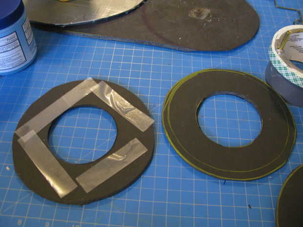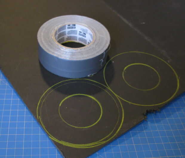 - Utilizando el cemento de contacto, pegamento de los círculos que se utilizan para levantar la cinta del conducto del rodillo.