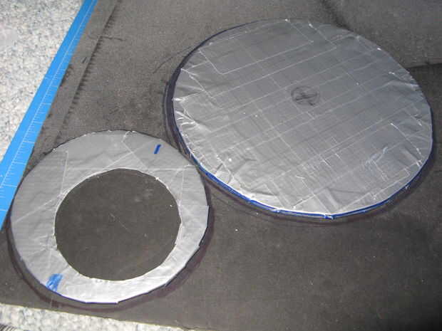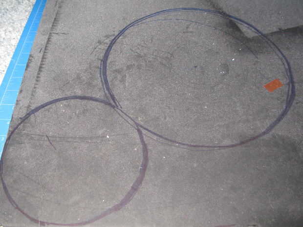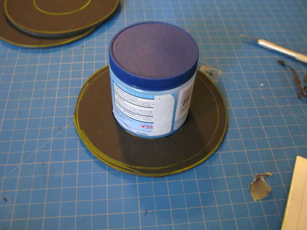 - Extraer una base de dos círculos de tamaños diferentes. Uno debe ser al menos el tamaño de la base de la bandeja giratoria. El otro debe tener un diámetro de aproximadamente una pulgada o dos pulgadas más grande que el cilindro tarro o interno del turner.
