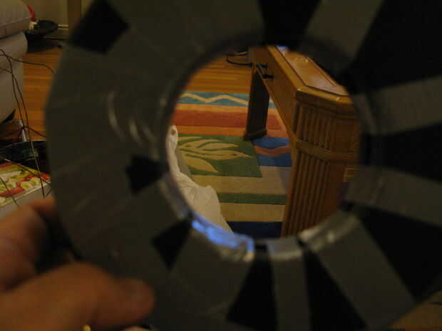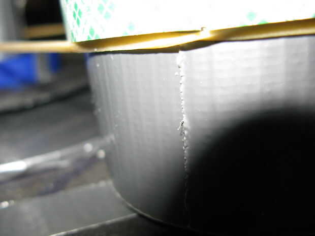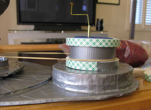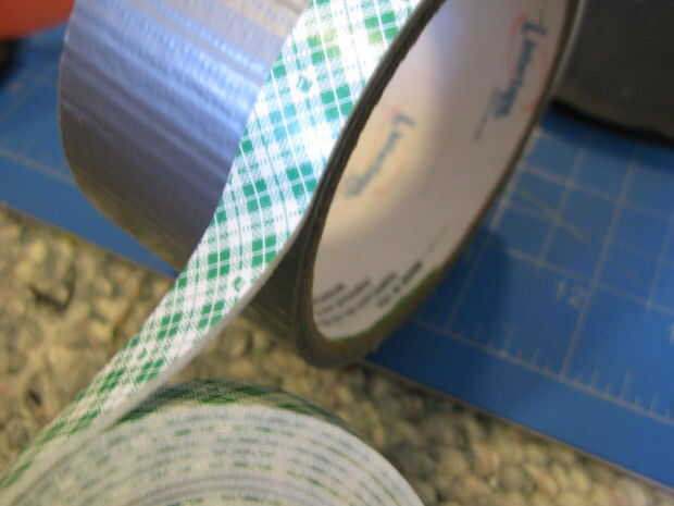 - Añadir más cinta de montaje a ambos el estabilizador de la vuelta y a los bordes superior e inferior del rollo de cinta de conducto para evitar que la goma resbale fuera de lugar mientras que da vuelta.