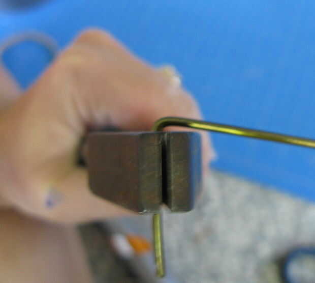 - Corte una longitud de 4 pulgadas de alambre. Lo pellizque aproximadamente 1 pulgada del extremo y doblar el alambre en un ángulo de 90 grados.