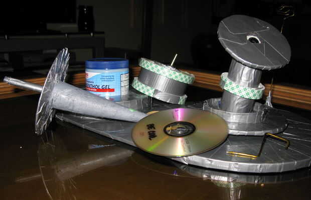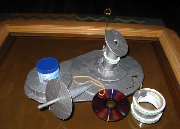 Giro estabilizador fabricado en dos pasos distintos. (Tubo de cartón, Oogoo, lápiz de tubo hueco, cartón corrugado o base de la espuma, acolchado doble cara cinta adhesiva, goma, pluma de la marca)