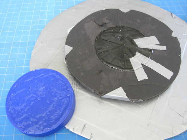 2. Tome su gran disco/tapadera y centro lado plano hacia abajo sobre la bandeja giratoria. Esto realmente debe estar centrado para ayudar a mantener estable el Lazy Susan. Coloque el disco como cerca del centro como usted puede. * Suavemente gira Lazy Susan y ver que el disco está descentrado. Si mantiene un constante lápiz y tocar el borde del disco mientras se gira la parte superior de la bandeja giratoria, puede ver más fácilmente qué lado se está pegando hacia fuera. Toque en ese lado. Repetir desde * hasta que el disco esté centrado.