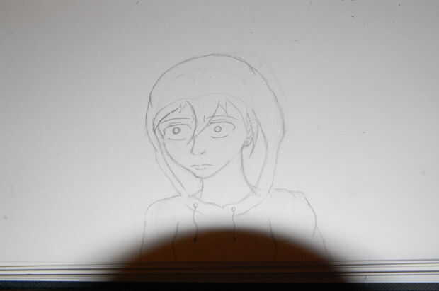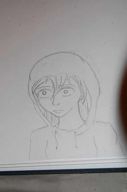 Añadir algunos detalles como líneas, sombreado o ambos (lo hice líneas). con líneas Asegúrese de que las corrientes de línea con la forma del punto va. también sombra el espacio negativo dentro de la hoddie (también incluyo mucho pelo en la capucha).