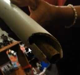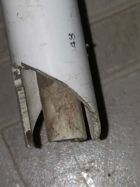 Uso lo que quieres que quepan en el tubo grande para su peso de remover basura. Usé un. 5" diámetro 1 pie de largo pedazo de tubo de pvc. Perforación de un orificio de 1" en medio de la guarnición"t". Agujero de taladro en peso para el cordón o striing. Ate la cuerda al peso y la parte superior del "t" conjunta y peso de la gota en el tubo de mayor diámetro. Nota: Al medir la cadena, asegúrese de que cuando no esté en uso, peso cuelga sobre incluso con puntas de cuchillas de corte.