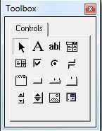 Los controles de un UserForm se pueden encontrar en lo que se conoce como la "caja de herramientas". Cuando insertamos un UserForm desde dentro de VBE (entorno de Visual Basic) a través de Insertar > UserForm se mostrará la caja de herramientas por defecto. O podemos ir a Ver > caja de herramientas. La caja de herramientas contiene una ficha sola página acertadamente llamado "Controles". Es aquí que vemos todos los controles de Visual Basic y cualquier control ActiveX que se han añadido. Por defecto será dieciséis controles disponibles son: