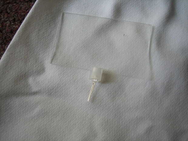 Al insertar el LED puedes poner un poco de pegamento loco, para estabilidad, especialmente si el agujero no es un tamaño exacto. Al insertar el LED, Asegúrese de que los cables son perpendiculares a la ranura en la parte superior, esto asegurará que la tarjeta será paralela a la base. También puede Agregar un poco de pegamento para las propias tarjetas, sin embargo todavía es necesario grabar estos, tan sólo asegúrese de que sus ranuras son del tamaño correcto probando algunos clientes pero no coloque las tarjetas todavía.