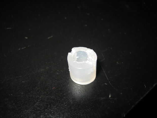 En primer lugar, cortar la varilla de polipropileno en piezas ~7/16 ". El objetivo es poder tener tu LED todo entra en el widget hasta el cuello pequeño en la parte inferior del LED y también tiene espacio para poner una ranura para la tarjeta de.