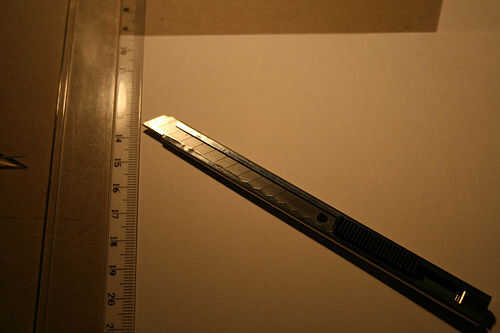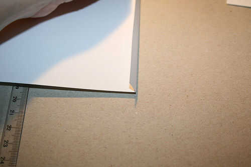 Mida aproximadamente 1cm en el lado izquierdo de cada página y marque esta línea. Luego, cuidadosamente, anotar esta marcada la línea con el cuchillo. Tenga cuidado de no cortar el pedazo pequeño, sólo lo puntuación por lo que es más fácil doblar el papel.