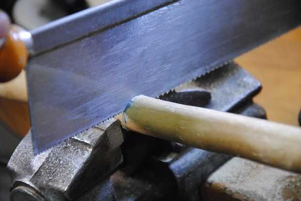 Me sujeta la espiga en mi tornillo de banco y utilizar una sierra de mano normal para cortar a la longitud.