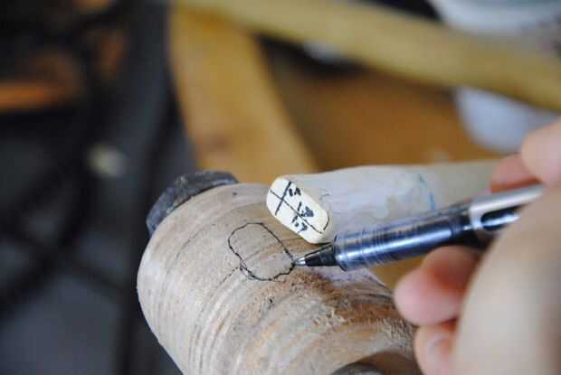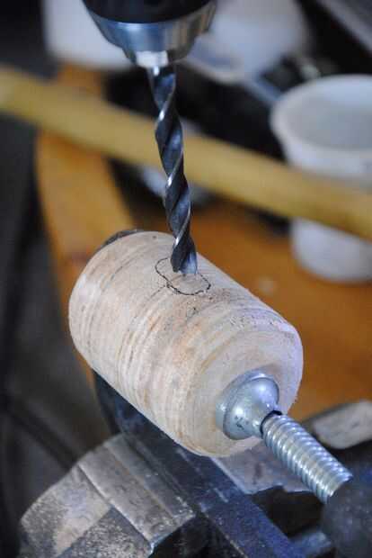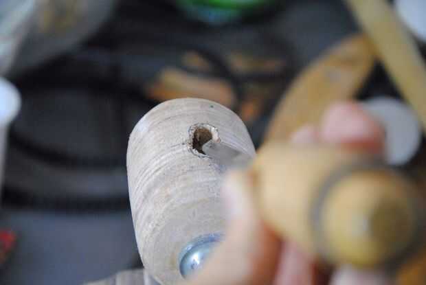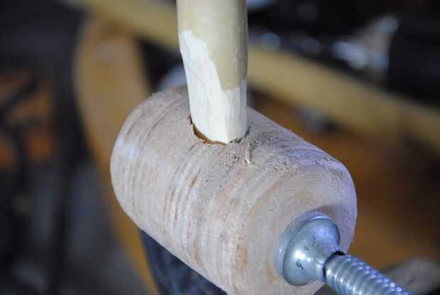 Como mencioné antes, cabeza del mazo la necesita un agujero por lo que es posible insertar la clavija (sólo no encolarla, tiene que sentarse bien en la cabeza del mazo...)