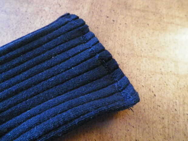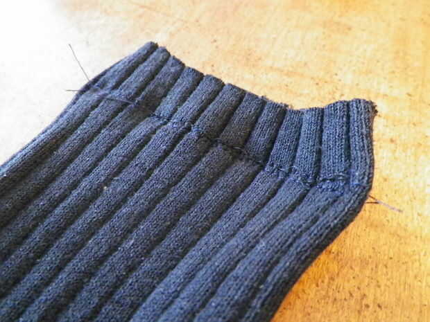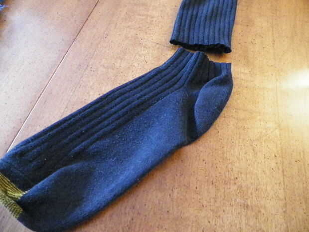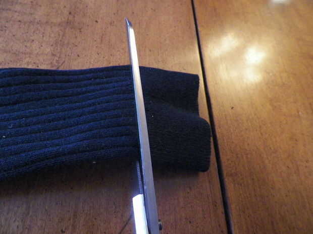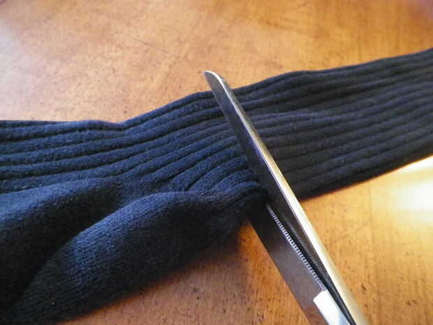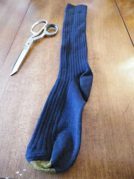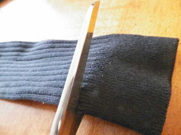Recortar el calcetín, como se muestra en la foto principal de arriba, hasta que tenga una forma rectangular uniforme.  Coser uno de los extremos de su HotSock cerrado.  En este punto su HotSock debe ser aproximadamente de 7" de largo.