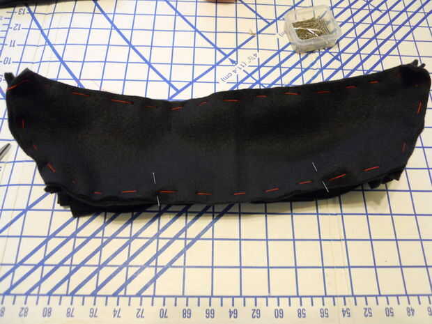 Coser el frente, lados y juntos de nuevo piezas por la máquina, creando un gran anillo de forma extraña.
