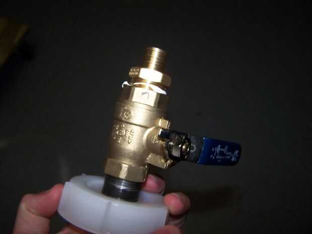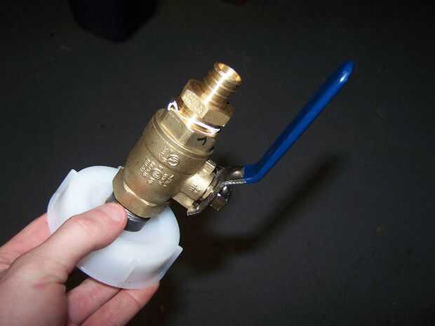 La última pieza para montar es la tapa de la bombona. Perfore un agujero de donde se supone que y atornille el conector. A esto, añadir una válvula de bola y el adaptador de manguera cuarto.