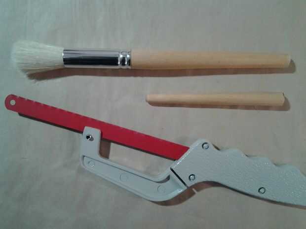 Después de cortar el mango, puede utilizar un papel de lija para suavizar los extremos de la brocha y de nuevo tirador de la lezna.