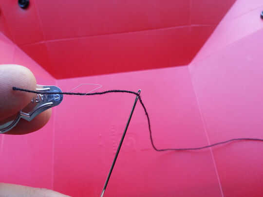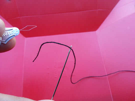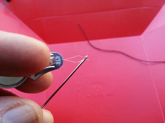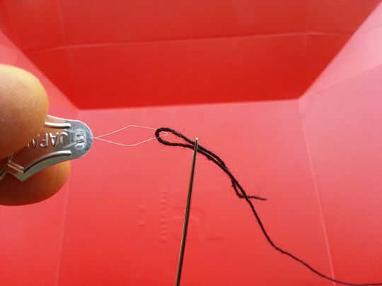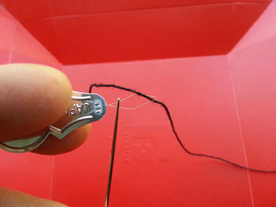 Usted necesitará un enhebrador de la aguja (redskyie recomienda para utilizar una aguja de abalorios... utilizar cualquiera que tenga disponible). Es un pequeño trozo de alambre con una manija que deslice por el ojo de la aguja, luego poner el hilo a través del lazo del enhebrador que pasó por el ojo de la aguja y finalmente, sólo deslizar la aguja de la Roscadora de engranajes que a su vez los hilos de la aguja.