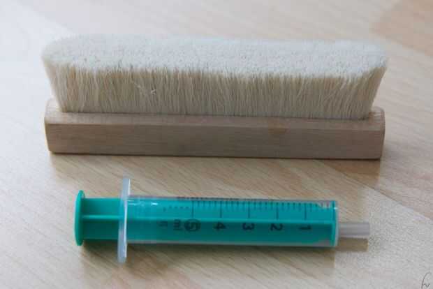 Haz el plato comenzó. Use la jeringa para aplicar el líquido al registro un bruch el registro con el cepillo de cabra. No seas demasiado tímido. Puede utilizar una poco la presión y la tabla de la vuelta de lo contrario. Eso es el verdadero procedimiento de lavado.