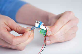 Fijar la batería firmemente a la parte superior del cepillo de dientes, por lo que el alambre está en la parte inferior. Utilizar una banda de caucho, alambre de amarre, amarra o pedazo de cinta o cinta de espuma doble antiadherente.