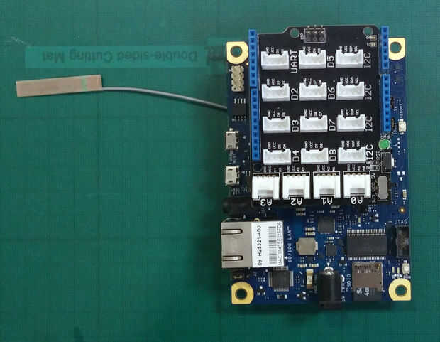 Tu escudo de Grove tiene dos filas de pines en la parte inferior. Alinear estos pines con los receptores en la parte superior el Galileo y empuje suavemente en su lugar.