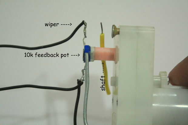 4. pegar los extremos del montaje del cable al cuerpo del potenciómetro (no el botón) y fijarlo en el motor