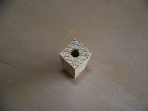Puede empezar por taladrar un agujero de 5/16 Avos hacia abajo en el centro de la pieza de madera. ¿Cómo profundo? Menos profundo que la madera, o si necesita exacto los números, el orificio debe ser x-1 pulgadas de profundidad, donde x es la longitud de la pieza de madera. ¿Use un taladro y un tornillo de banco, si usted elige a mano alzada, por favor Sujete la madera en algo, no quieres hacen astillas?