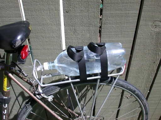El difícil problema a resolver: vejigas de colapsan cuando se extrae el agua y botellas de PET de soda no. (Así lo harán con el tiempo, pero no antes de su estallido de orejas!) Por lo tanto el aire debe agregarse a la botella cuando se extrae el agua. La forma de hacerlo es montar una pequeña válvula de retención al lado de la manguera de beber. La dificultad es que son pequeñas tapas de botellas y no fue fácil ingeniárselas para adaptarse a una manguera de tanto beber y válvula de retención.