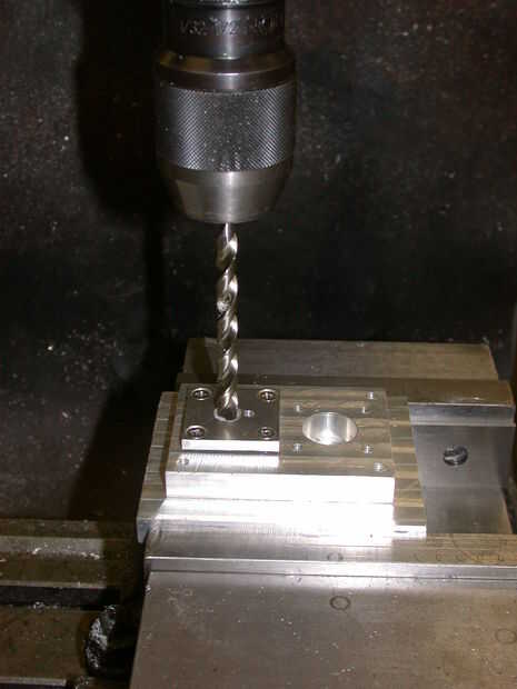 4. utilizar el dibujo para centrar una broca de tamaño Q sobre el agujero grande. Perfore a través.