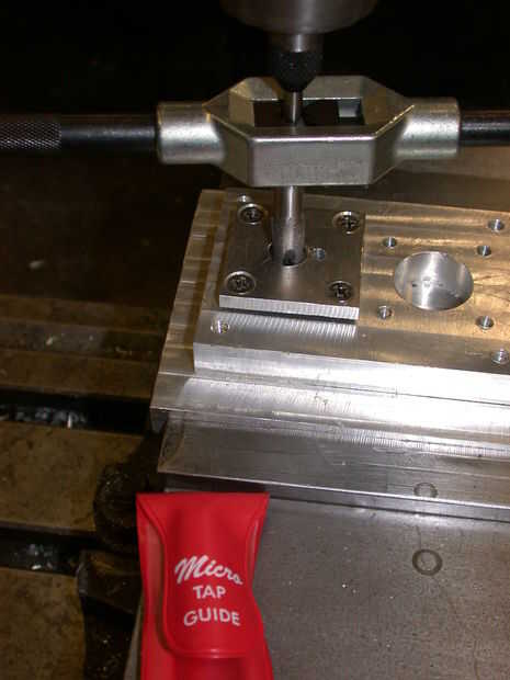 5. Ponga a una guía de llave con resorte en el cheque para mantener 1/8-27 NPT (cónico) grifo orientado verticalmente mientras que toque temas para la lengüeta de la manguera.