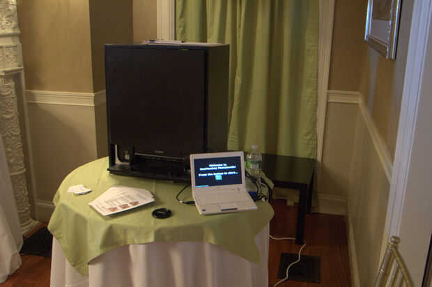 Todo encender y conectar. Puede ocultar el portátil dentro encima de la impresora. Ahora tienes un mini-photoboooth autónomo en y marcha sobre su mesa.
