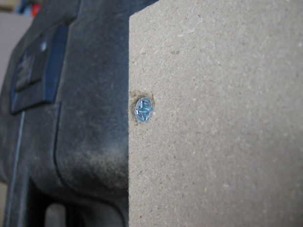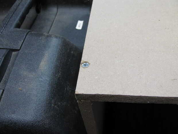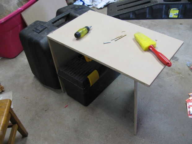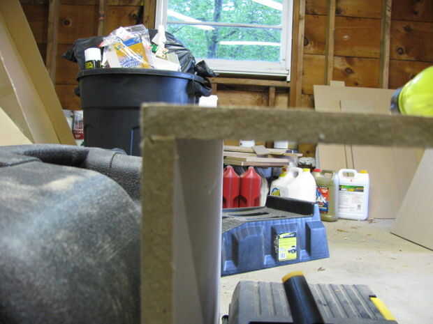 No tengo una plantilla para seguir todo recto, así que puso un panel en el suelo y poner otro en la parte superior. Apoyo todo para arriba con lo que nunca práctico - en mi caso, cajas de herramientas. Poner una cosa decorativa esponja amarilla en la parte superior mientras se seca. Las esquinas salieron sorprendentemente Plaza trabajo mirado por el ojo.