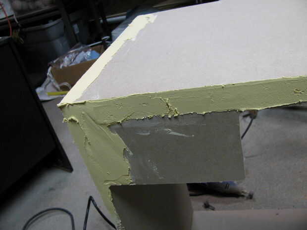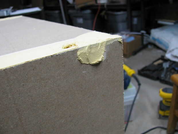 En las fotos, verás que utilicé masilla para madera para alisar donde la cara se encuentra con las paredes. Un montón de relleno. Demasiado relleno. Si usted tiene que utilizar esta cantidad, has podido alinear todo. Relleno ayudará, pero todavía parece un poco shody.
