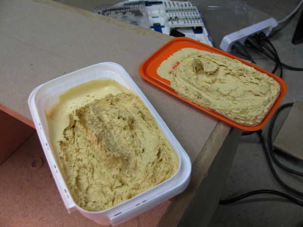 Usar capas muy finas de relleno, de lo contrario nunca te seca. Una vez todo seco, volver atrás y todo lo suave de la arena. Si tienes a la arena a través del relleno, puede agregar más, secar y repetir. A trabajar hasta que está satisfecho con cómo lisa todo es.