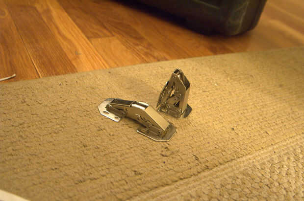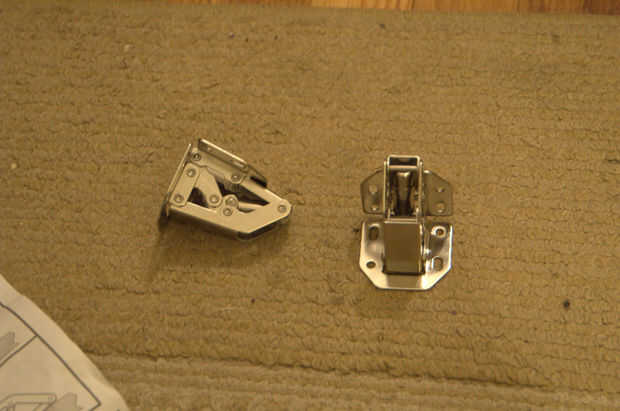 He usado fácil instalación montaje en superficie de las bisagras ocultas de Home Depot. Permiten que el panel se ajuste al ras * interior * el cuadro de y abierta hacia fuera más allá de 90 grados. Asegúrese de que usted verifique las instrucciones - hay maneras específicas de montaje según el panel de la puerta sea dentro o fuera de la caja. Son muy agradable y fácil de instalar, altamente recomendable.