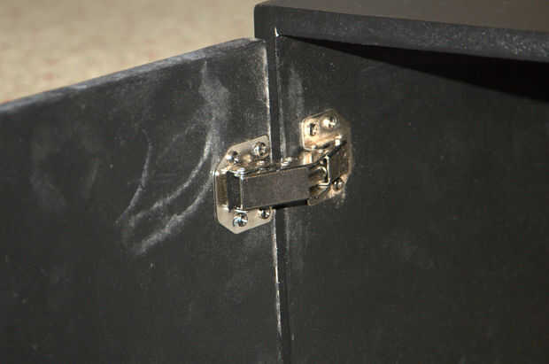 El cierre magnético es simple... simplemente Atornille la lengüeta metálica hacia el panel, luego atornille la parte del imán en la pared del lado interior de la caja de donde nunca llega. Utilice un rotulador plata para marcar taladro puntos para más adelante, ya que no muestran lápices/marcadores de pintura negra.