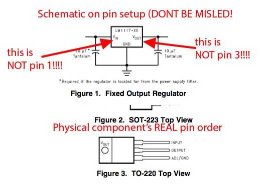 NOTA IMPORTANTE; no mezclar las etiquetas de pines en el esquema con el de los pines físicos reales! las cosas se pondrán muy calientes demasiado pronto... esto es todo en la hoja de datos para el LM117.