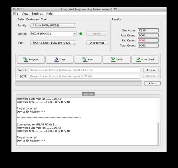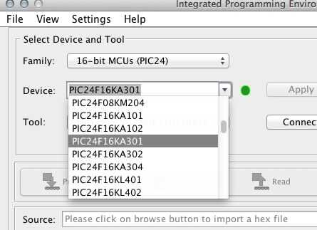 Una vez que el chip está conectado correctamente al Pickit 3, usted puede comprobar que todo está bien y justo en el mundo usando el MPLAB IPE.