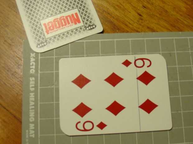 En primer lugar, colocar una tarjeta horizontalmente en la parte superior de una segunda tarjeta vertical.  Si los bordes están alineados correctamente, tienes una buena guía para una plaza.  Marque esta línea y corte de la tarjeta.