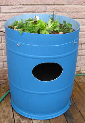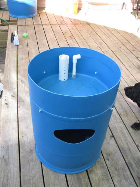 El contenedor de estas instrucciones son para el tambor de 55 galones pero trabajarán con tambor de 35 galones. Las principales diferencias son: 35 galones – corte el cañón y hacer la cama de crecimiento es 8 de la parte inferior de la barrica 35 galones – agujero Oval es 5 pulgadas hacia abajo, altura de 5 pulgadas y 8 35 ancho galón – manguera de plástico 30 largo o como prefiere 55 galones – corte el cañón y hacer la cama de crecimiento es 8 de fondo del barril de 55 galones – agujero Oval 6 pulgadas hacia abajo , 6 pulgadas de altura y 9″ amplia 55 galones – manguera de plástico OA40 largo o como usted prefiera ambos utilizan las mismas piezas de plomería y bomba. Comprar un barril de 55 galones que tenga una tapa sellada y sólida y sólo se ha utilizado para almacenar los alimentos en él. Esto se llama un envase de alimento de calidad. Utilice un barril de color oscuro para que la luz del sol no llegar hasta el agua y crecen las algas. Asegúrese de que el barril es más cónico (tapered) que tubular (lado derecho) como el diseño depende de él. Hay generalmente dos enchufes en la parte superior del cañón. Quitar uno de ellos y lavar el barril.