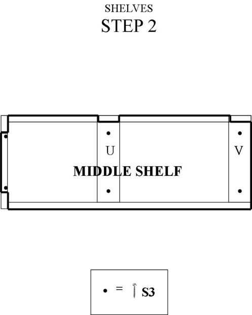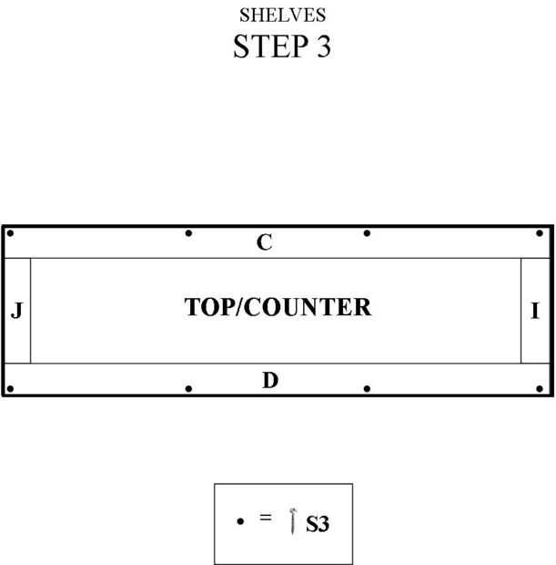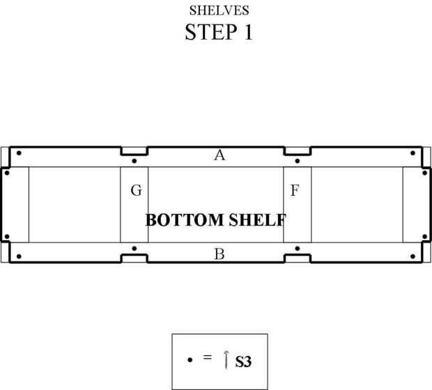 Estamos utilizando madera para estantes.  Puesto que la madera ya cortada a las dimensiones especificadas, podrá colocar los estantes en el marco y atornillar como se muestra en los diagramas anteriores.
