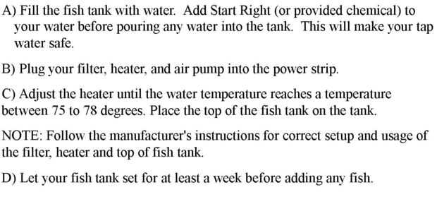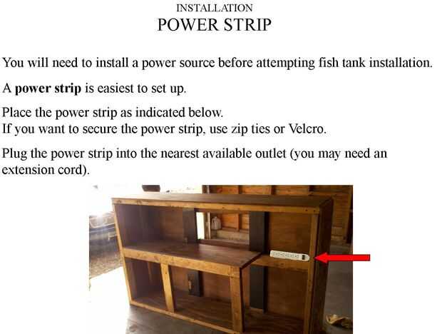 Finalmente ha llegado el momento de instalar tu pecera!  Power strip (requerido) y mini nevera (recomendado) Instrucciones de instalación están incluidas.  Asegúrese de instalar la regleta antes que nada.