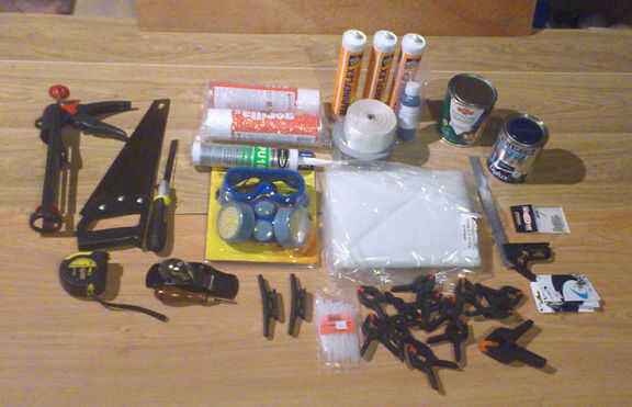 La madera contrachapada es estándar 4 pies por 8 pies (1.22 × 2.44 m). (Usted ni siquiera necesita caro 'capas marinas' como va ser completamente sellado con la pintura y el pegamento y el pegamento es muy fuerte). 6mm puede parecer muy delgada, pero tiene que ser lo suficientemente flexible como para formar en la forma de barco y hacerlo lo hará mucho más fuerte. Tenga en cuenta también que es el agua que soporta su peso!