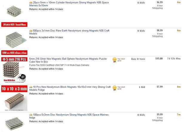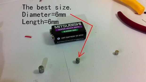 I' ve probado imanes de diferentes tamaños. Y podría encontrar el mejor tamaño para este proyecto. Usted puede comprar a este tipo de imanes en ebay buscando la palabra clave "Imán de neodimio". En realidad, hay una frecuencia de resonancia. Cuanto más grande es el imán, la frecuencia de resonancia inferior obtendrá.