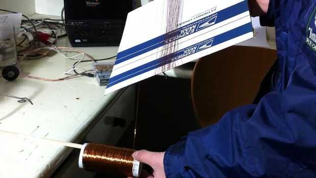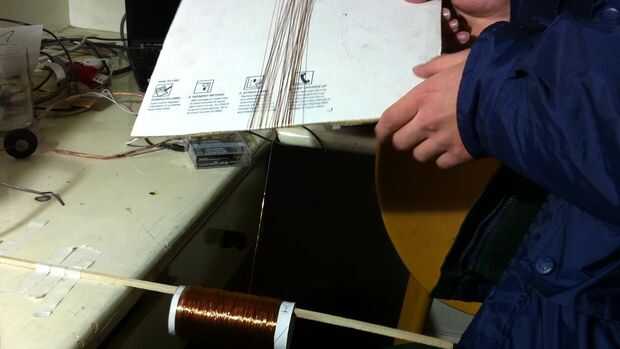 Alambre esmaltado es un alambre de cobre tipo que es revestido con poliuretano. Yo uso una cartulina para el collar de la bobina del viento. Asegúrese de que el diámetro de este collar de bobina es mayor que el diámetro de la cabeza. La resistencia de la bobina que hice es aproximadamente de 23 ohm.