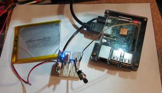 Lo siguiente pretende mostrar cómo hacer cualquier batería del proyecto Raspberry Pi accionado y recargables ***. Este no es tan fácil como debería ser porque la frambuesa Pi requiere poco más de 5VDC para funcionar correctamente. (Realmente quiere 5.2 a 5,25 voltios). Así que tenemos que tomar el voltaje de la batería de 3.7V y boost a 5.2V. (Alternativamente se puede usar un 7.2V batería y buck que hasta 5.2V.) También necesitamos un circuito para carga de la batería. Por suerte hay un par de productos que se incluyen en un módulo. La que estamos utilizando aquí es el powerboost 1000 C de Adafruit. Tiene una salida de 5.2Vcd que es perfecto para la frambuesa Pi y tiene un amplificador de 1 circuito (vía micro USB) de carga para recargar nuestra batería sin tener que desconectar.