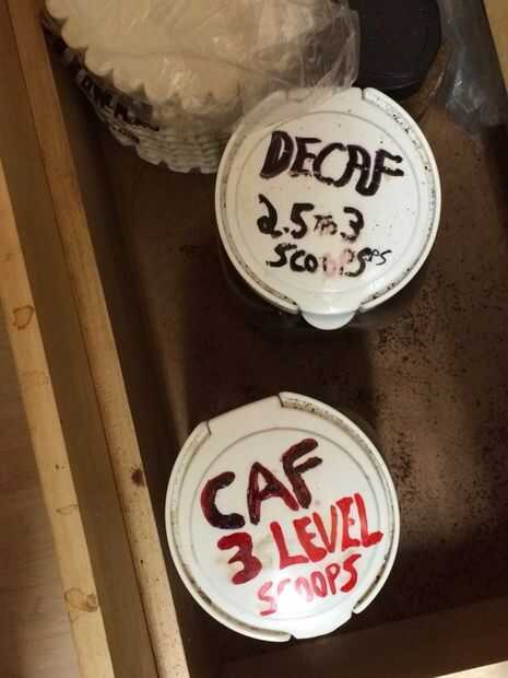 El suministro de café estará ubicado en algún lugar cerca de la máquina. Pruebe uno de los gabinetes o un armario cercano. Este es un elemento preciado y no se puede tratar livianamente. Tenga cuidado al acercarse. No quiere despertar la suspicacia.