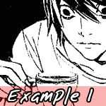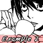 o dibujar L del mismo modo sólo con él sostener la taza de té en su cara por lo que parece que él está bebiendo de ella como ejemplo 2.