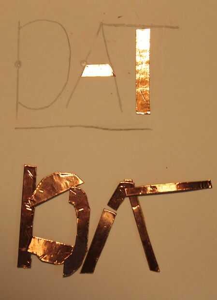 Si su método preferido es usar la cinta de cobre: todas las piezas cortadas a las formas correctas para hacer las letras (véase los cuadros).