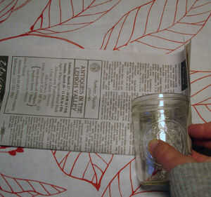 Alinee su tarro de masón o taza con el periódico para que unas pocas pulgadas de papel están por encima de la apertura de la Copa. Rollo el periódico así que circunda la Copa.