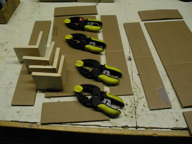 Todas las piezas se pegan, a partir de las unidades inferior y lateral. Luego se agregan los extremos. Ver información sobre la imagen para más detalles.