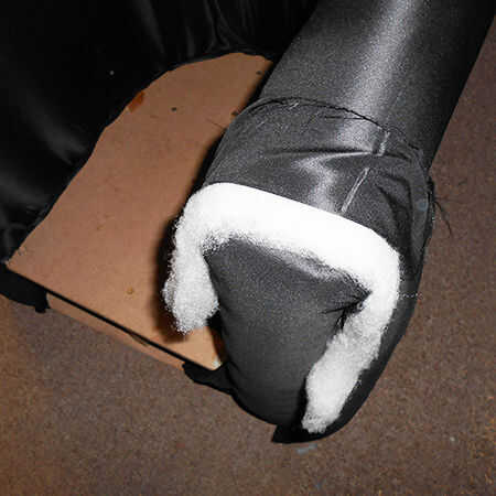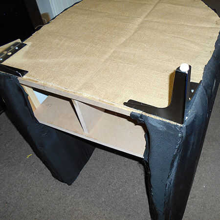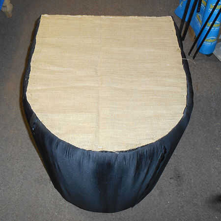 7. para un acabado profesional añadir un trozo de tela a la base para tapar las grapas. Corte para colocar y pegar esto en su lugar con pegamento de contacto.