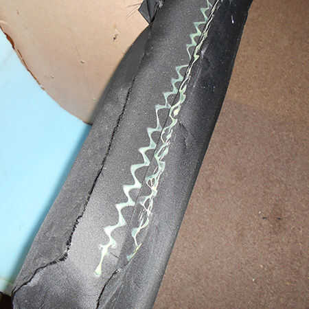 6. Utilice pegamento para tela o pegamento para envolver los extremos de los lados sobre el panel frontal de contacto. Usé pegamento de contacto porque seca mucho más rápido. Tenga en cuenta que todo esto se cubrirán con la funda. Desea formar la espuma y tienen un acabado que permite la fácil colocación de la funda.
